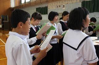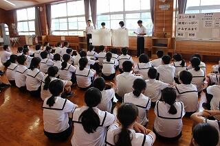 9月25日(火)に生徒集会が行われました。生徒集会では、各委員会の今月の取組に対する反省と来月の目標についての取組の確認を行いました。また、今回の生徒集会では、学習面をよくするにはどうしたらよいかについてグループをつくって話し合いを行い、話し合いの結果を発表し合いました。