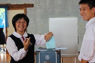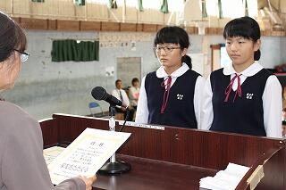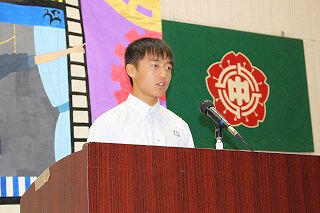 8月30日(木)、全校生徒の前で今年度の選挙管理委員が生徒会役員選挙の告示を行いました。選挙管理委員は毎年3年生から選出されます。選出された選挙管理委員たちが模造紙に生徒会役員選挙の要綱を書いて全校生徒の前で説明しました。生徒会役員に立候補するのは現在の2年生と1年生になります。積極的に多くの生徒たちが立候補してくれると嬉しいですね。
