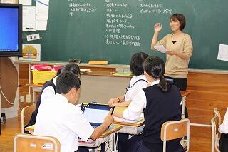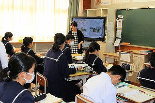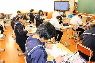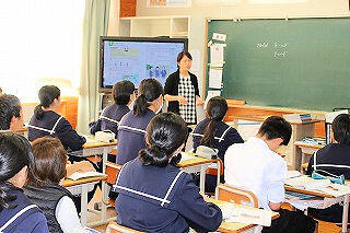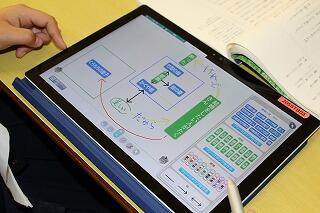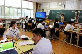 昨年度より本校では、生徒の学習活動においてタブレットPCや授業支援ソフト、ドリルソフト、電子黒板などを効果的に活用するにはどうしたらよいかについて研究してきました。12月12日(水)に、その成果を発表する授業公開が行われました。