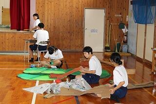 9月23日(日)に陰陽石まつりが行われ、本校の生徒たちが演舞を披露しました。生徒たちや保護者、輪太鼓保存会の方々が、準備のために朝9時に体育館に集まり、衣装の着付けや太鼓などの道具の積み込みを行いました。準備のためにお手伝いいただいた保護者や輪太鼓保存会の方々ご協力ありがとうございました。