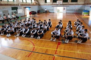 9月4日(火)の5時間目は全校体育練習でした。生徒たちは本校のグラウンドで全校リレーのバトンパスの練習をしました。本番では、うまく全員バトンパスができるといいですね。