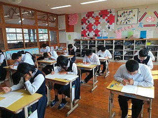 9月14日(金)に、3年生で音楽の授業が行われました。授業では「友」という歌の合唱練習をしました。少しずつ合唱が仕上がってきています。さすが3年生! 一生懸命ハーモニーをつくっていました。