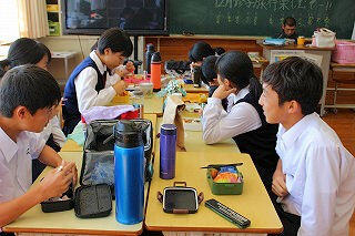 12月13日(木)に、本校の2年生4名と都城きりしま支援学校小林校中学部のみなさんで交流給食を行いました。給食のメニューは麦ご飯とちくわの磯辺揚げ、味噌汁でした。みんなでおいしくいただきました。