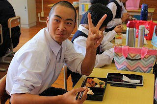 9月18日(火)はお弁当の日でした。生徒たちは各家庭で自分たちでお弁当を作ってきて、学校でみんなで一緒に食べました。ちょっとした遠足気分で、みんな楽しく食べていました。