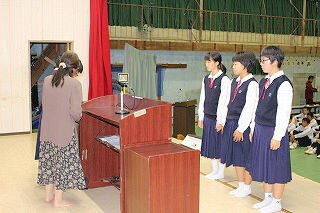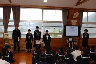 12月4日(火)に生徒集会が行われました。新しい生徒会役員になって2度目の生徒集会でした。生徒会役員たちも慣れたのか、スムーズに司会進行をしていました。