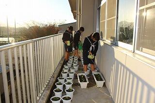 もう11月も終わりで、いよいよ今年最後の月に入ります。本校の南側やビーニールハウスの中では、用務員の先生が丹精込めて卒業式用の花の苗を育てています。来年3月まであと3ヶ月ですが、夏過ぎから用務員の先生は卒業式に向けて準備を始めていました。卒業式では、綺麗な花々に囲まれながら卒業生を送り出してあげたいですね。