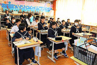 総数約120名の方々が来校され、生徒たちがICT機器を使いながら授業をする様子を見ていただきました。多くの方々が参観されましたが、生徒たちは緊張することなく、普段通り積極的に授業に参加していました。