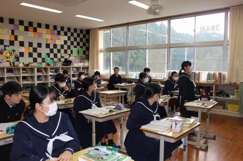 12月11日(水)、3年生の国語の授業で俳句を作りました。みなさんサラリーマン川柳ってよく聞きますね。授業が終わって、担当の先生に見せていただきました。出来栄えの良さに思わず「座布団一枚持ってきて。」と言いたくなりました。毎日、学校で楽しそうに生活している生徒たちですが、色々なことを考えているんだなぁと、少しほっとするようなうれしい瞬間でした。受験生でもありあと3ヶ月で卒業していく3年生に、「頑張れー!」とエールを送ります。