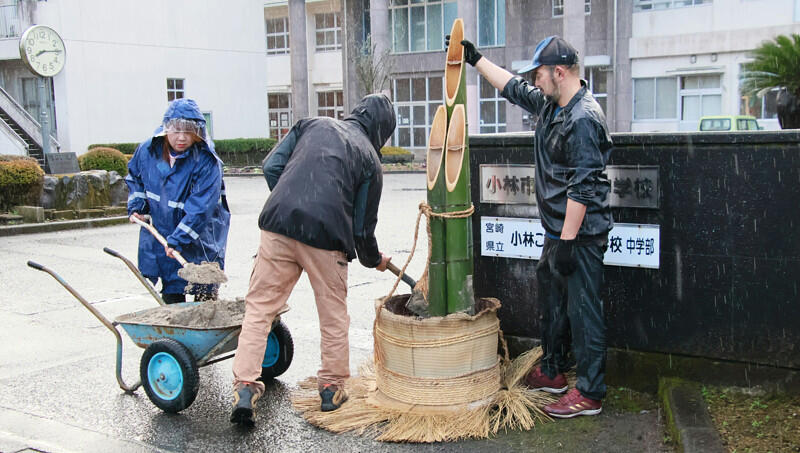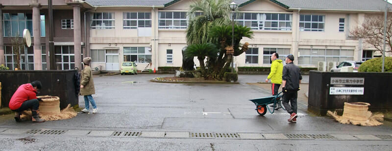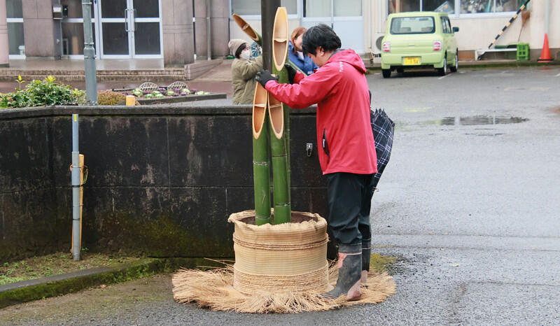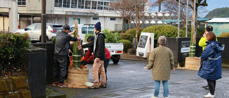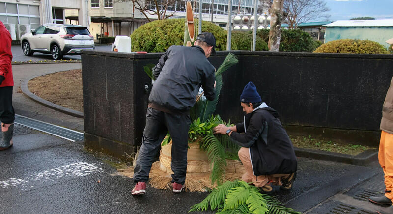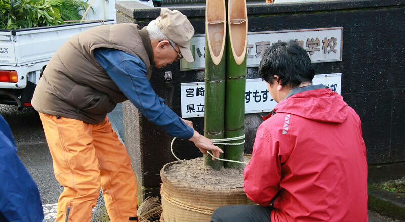 本日8時から、PTA役員の皆様および吉丸寧雄様のご協力のもと、門松づくりを行っていただきました。