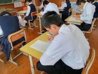 10月17日(水)と10月18日(木)に、3年生は第3回の学力診断テストがおこなれます。3年生にとっては進路決定のための飼料となる大変重要なテストです。どの生徒も真剣に取り組んでいました。