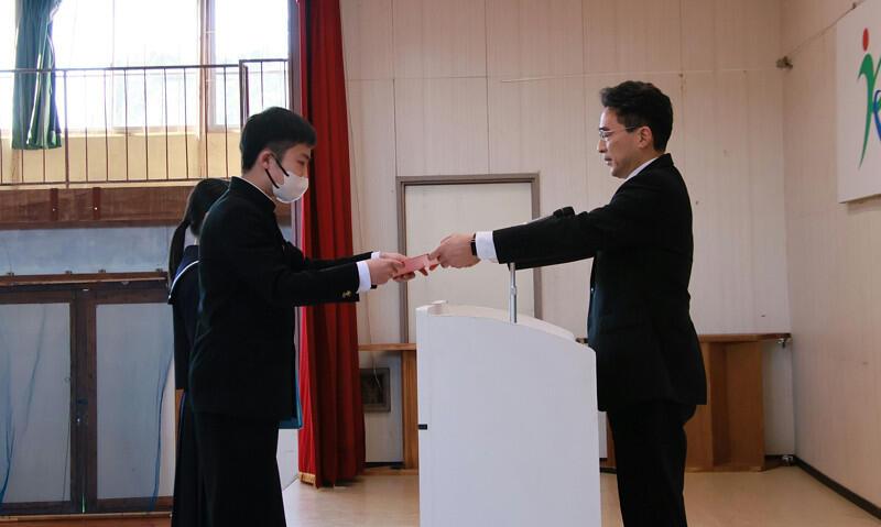最初に、学校長より、各学年の代表に修了証が手渡されました。