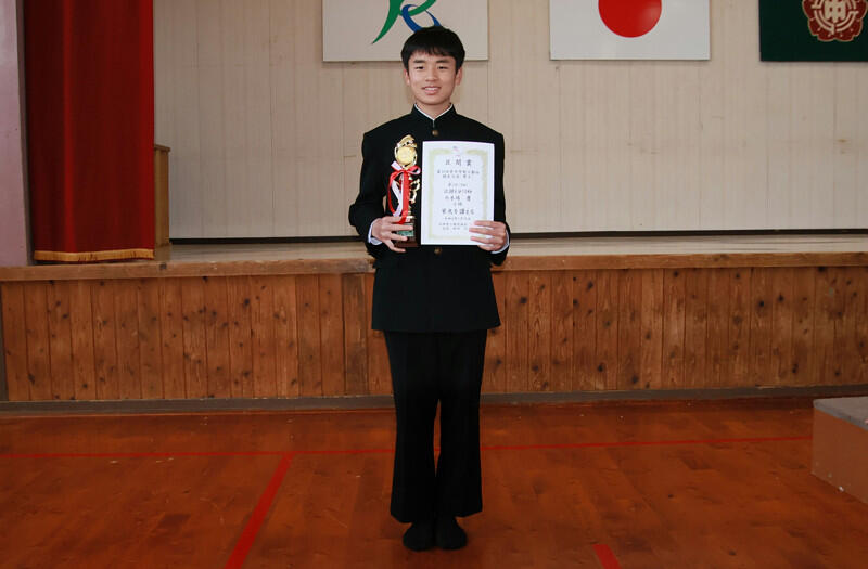 続いて、2月14日に行われた、第30回県中学新人駅伝競走大会男子の部において、内木場慶さんが、第3区(2km)の区間賞を獲得しました。記録は6分10秒でした。おめでとうございます!