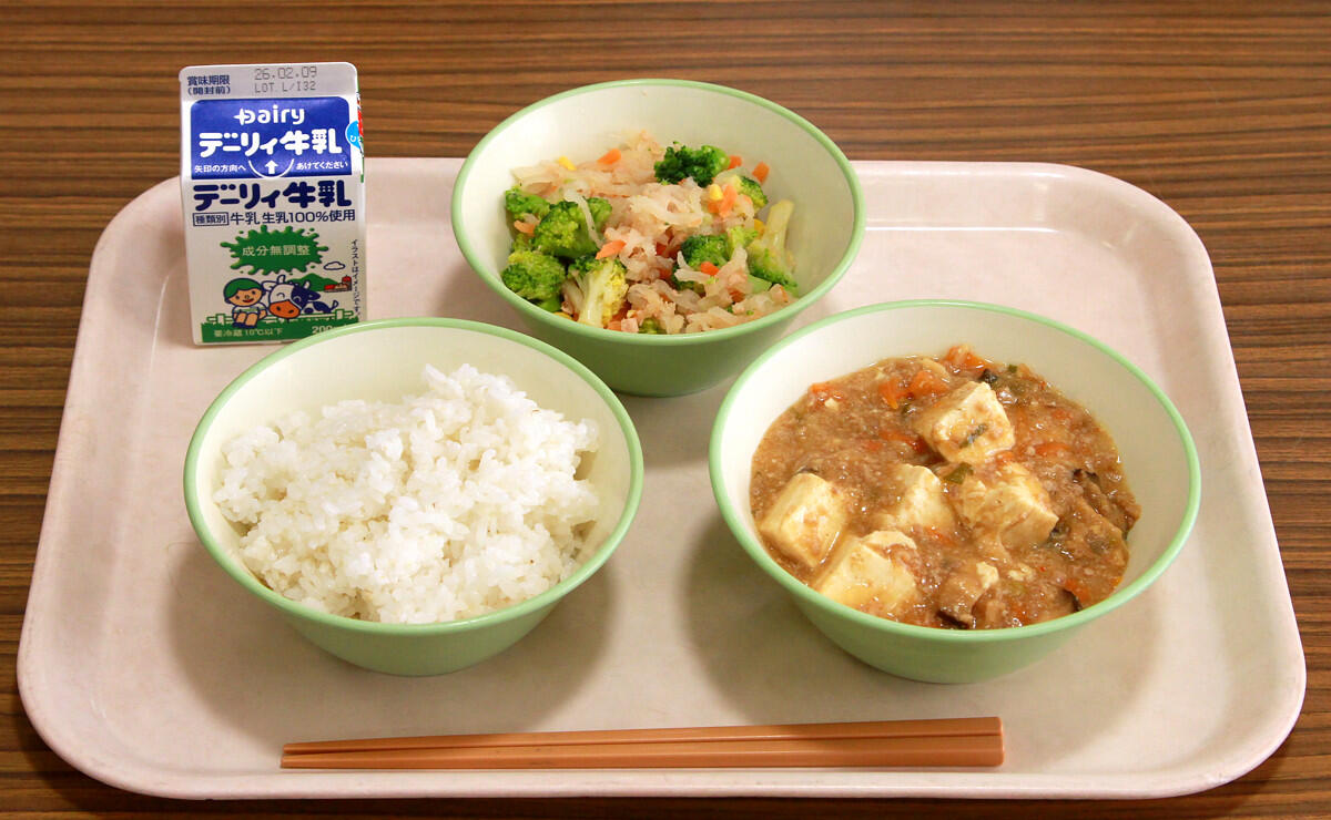 麦ご飯、麻婆豆腐、大根サラダ