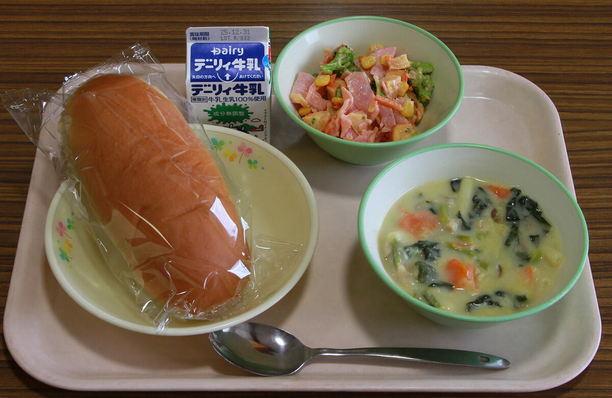 黒糖パン、マカロニのクリーム煮、さつまいもサラダ