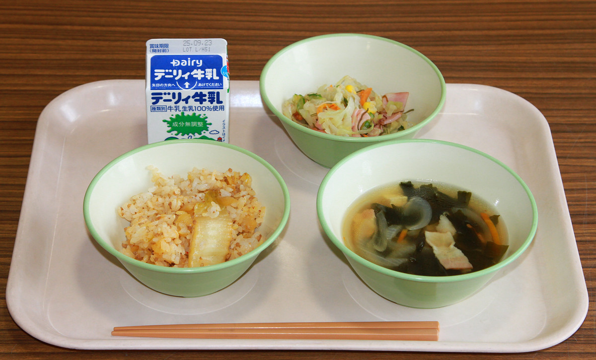 キムタクご飯、ワカメスープ、りっちゃんサラダ