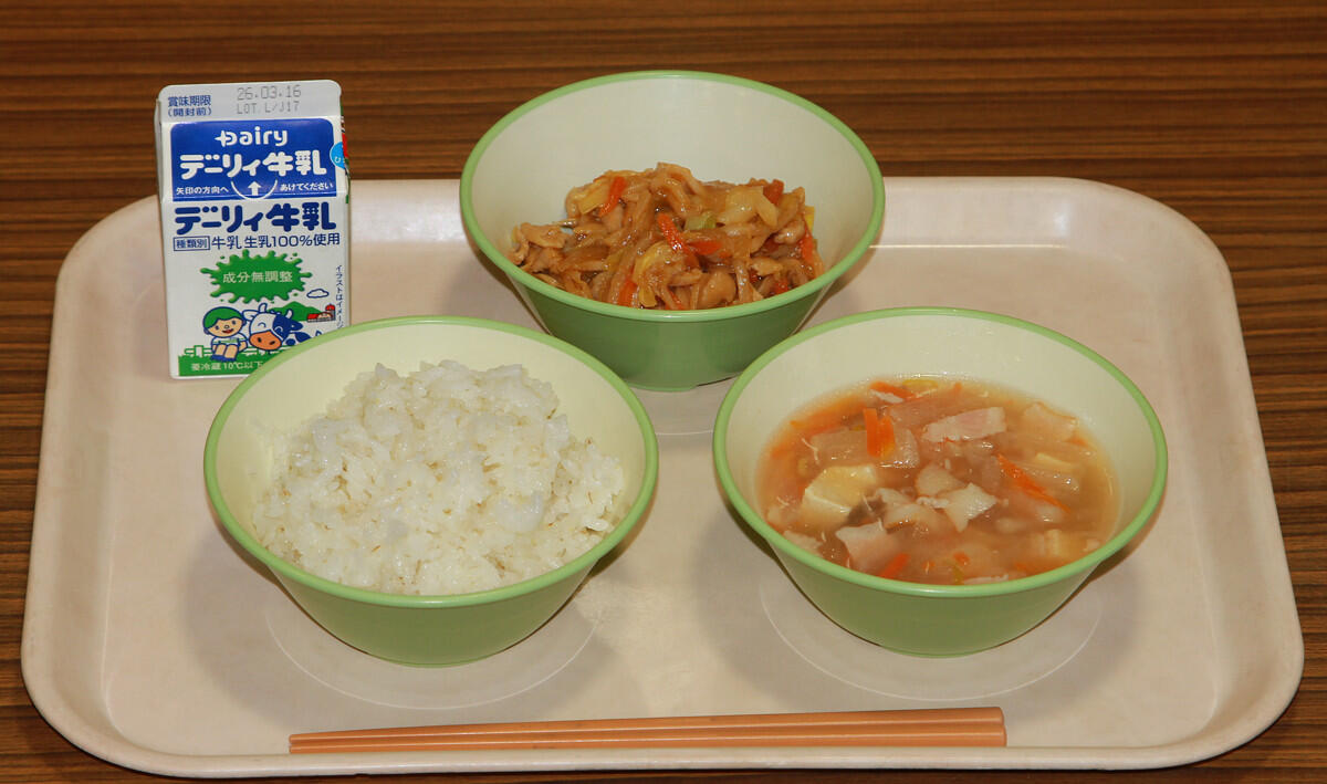麦ご飯、大根のスープ、鶏肉のオイスターソース炒め