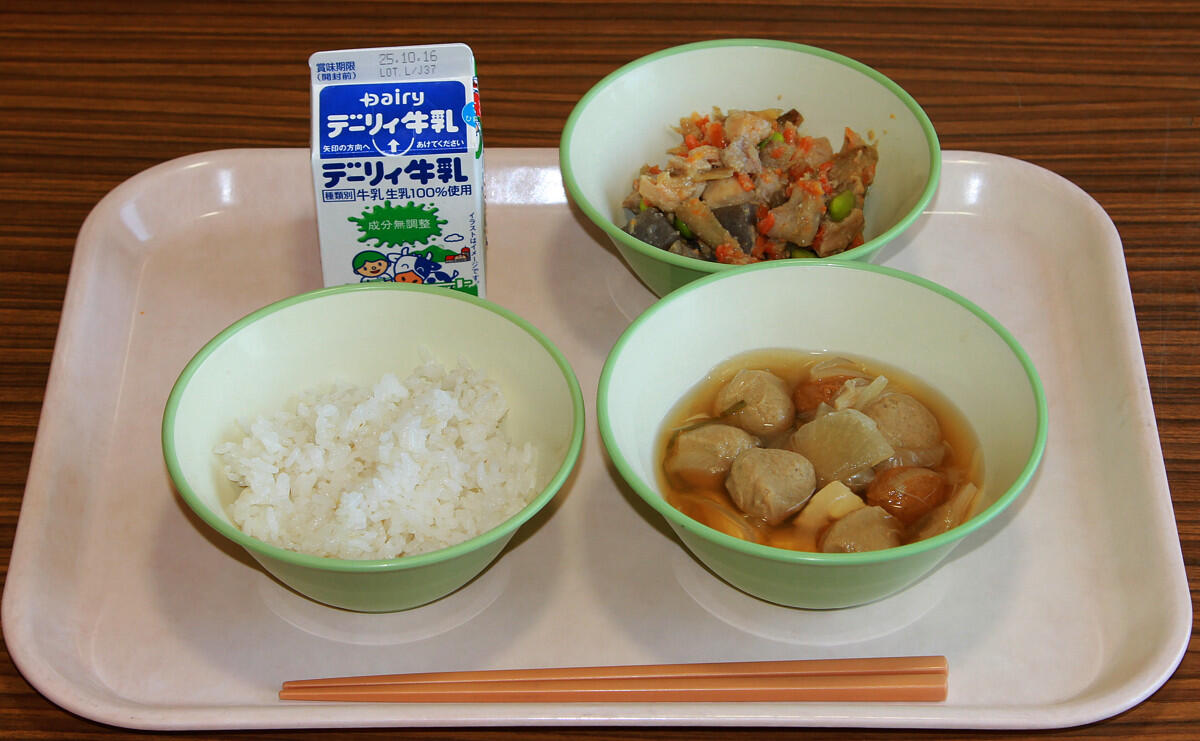 麦ご飯、鰯のつみれ汁、みそころばかし