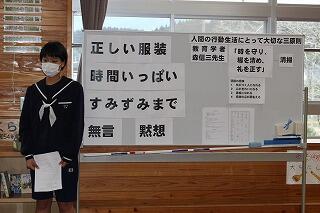 1月10日(木)に清掃集会が行われました。本年度に清掃区域が変わるのはこれが最後になります。また、3年生にとっては中学校生活最後の清掃区域となります。