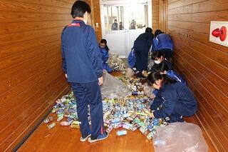 1月12日(土)に廃品回収が行われました。班品回収には保護者の方々や生徒たちも参加してくれました。ペットボトルを洗ったり、段ボールなどをまとめてトラックに積み込んだり、アルミ缶とスチール缶の仕分けをしたりと、たくさんの作業をしていただきました。ご協力ありがとうございました。