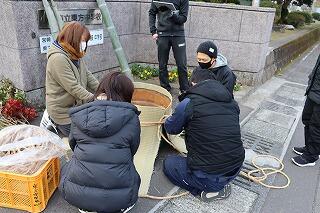 季節を感じる風物が正門に飾られると、新型コロナウイルス感染症によるいやな雰囲気も追っ払って、正月を楽しみにする生徒の笑顔につながっています。