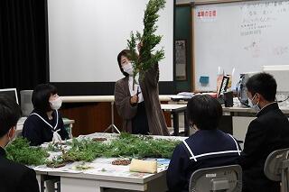 家庭教育学級が新型コロナウイルス感染症対策のためなかなか開催されていませんでしたが、今回3年生の学習とコラボして「おうちの癒やし空間 スワッグorリースをつくろう」を行いました。