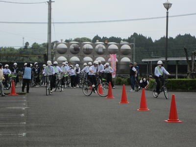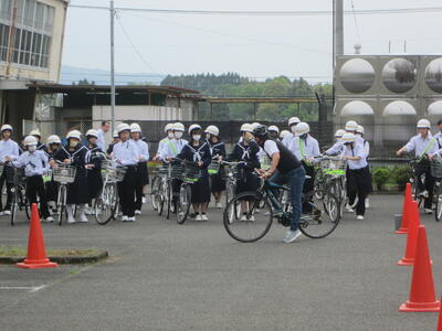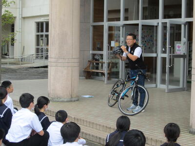 始めに、ヘルメットの重要性や自転車のホイールの特性などを丁寧に説明していただきました。その後、自転車を安全に乗るための実技指導が行われました。この教室を通して、交通安全について考え、実践してくれることを願っています。