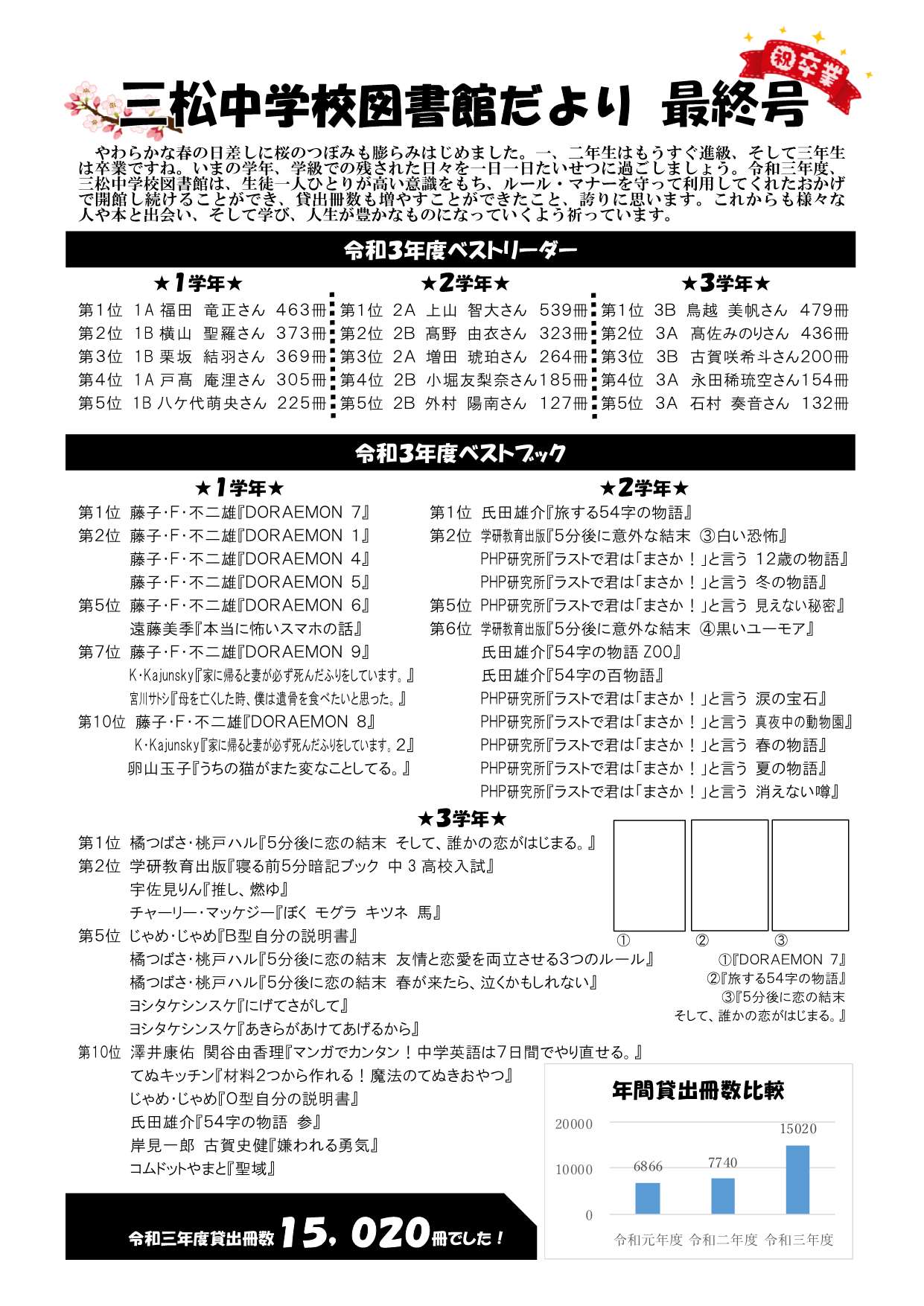 本Webページの著作権は、三松中学校が有します。無断で、文章・画像などの複製・転載を禁じます。