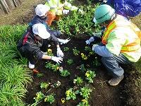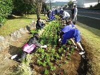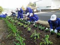 冬に咲く花は夏に比べて少ないのですが、小林の寒さに負けず咲き続けてほしいものです。生徒たちも寒い中でしたが、最後まで植栽作業をがんばりました。