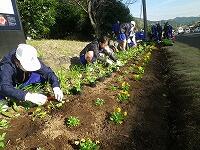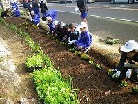 昨日はこの冬一番の冷え込みとなり、朝の気温は-1℃でした。冷たい風が吹き付ける中1年生が国道268号線沿いの花壇植栽を行いました。今回は冬から春にかけて咲く花としてパンジー、ビオラ、ポピー、ノースポール、アリッサムなどを植えました。