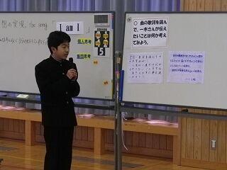 発表した後は、一木さんがシンガーソングライターを目指したエピソードと歌詞について解説していただいた後、ピアノの生演奏で「I am I」を歌っていただき、生徒達は歌に合わせて手拍子をしながら、良い雰囲気で授業を終えることができました。