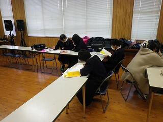 来週からいよいよ私立高校入試を皮切りに入試シーズンに突入です。3年生は放課後も学校に残って自主的に学習に取り組み、わからないところや難しいところがあれば先生から個別指導を受けています。冷たい外の空気とは違い、学習している空間は熱気にあふれています。