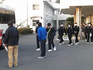 いよいよ今日から私立高校入試が始まります。今朝は小林西高等学校の入試に臨む生徒たちが、専用のバスに乗って学校を出発していきました。これまで積み重ねてきた学習の成果を全て出し切り、答案用紙の全ての回答欄に答えを埋めてほしいです。