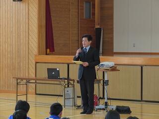 贈呈式では、更生保護女性会の田代智子様からお祝いのメッセージがあり、その後3年生を代表して津奈木勇輔さんと金澤弘瞬さんがメッセージとしおりを受け取りお礼の言葉を述べました。