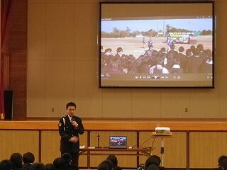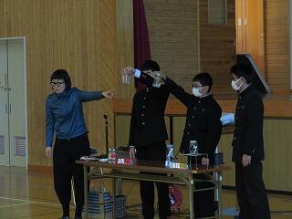 後半では交差点の通行方法などについて数名の生徒が実演を行いました。いざとなると緊張も感じているようでしたが、その緊張感が自分の身を守るためにとても大切だと思います。