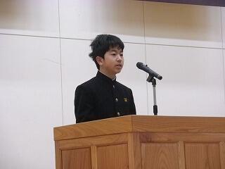 始業式では、新2年生・3年生そして生徒会の代表がこれからの一年間の抱負を発表しました。