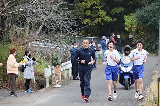 大変寒い中での開催でしたが、生徒たちはこれまでの練習の成果を十分に発揮し、力強い走りを見せてくれました。肝付校長先生も一緒に走ってくださり、観客も大いに盛り上がりました。