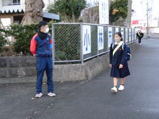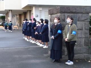 1月16日(月)の朝7時30分より、冬のあいさつ運動の後半がスタートしました。後半は3年生の受験を考慮し、1,2年生の保護者の方々と生徒たちが、厳しい冷え込みの中元気にあいさつ運動を行いました。