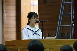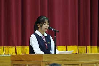 生徒代表お礼の言葉では、2年生の戸髙 颯祐さんが、「自分の行動に責任をもつ」「思いやりの心と優しさをもつ」「感謝する心を忘れない」を誓いの言葉として力強く述べてくれました。