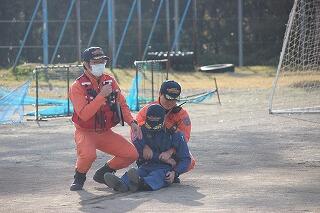 避難後は、中央消防署の方より避難状況についての講評と火災の現状についてお話をしていただきました。その後、各学年の代表者による消火活動のデモンストレーションを行い、説明通りしっかりと、そして的確に消火活動ができました。