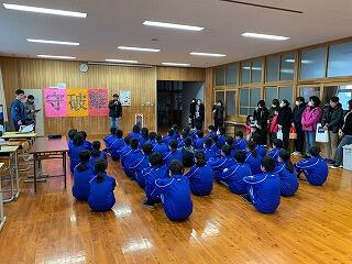 また、校舎玄関は本校の用務員が育てた冬の草花であるペチュニアやパンジー、そして正月には欠かせない葉ボタンが学校に彩りを添えています。
