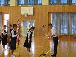 地区分散または県一括で行われた中学校総合体育大会の校納・表彰式が行われました。