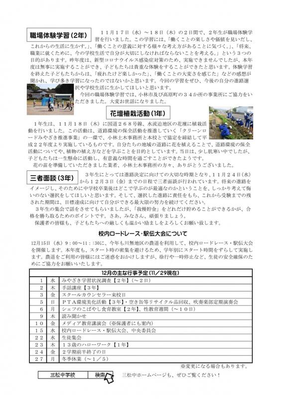学校だより「三松魂」の令和3年11月号②を掲載しました
