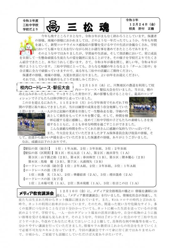 学校だより「三松魂」の令和3年12月号を掲載しました