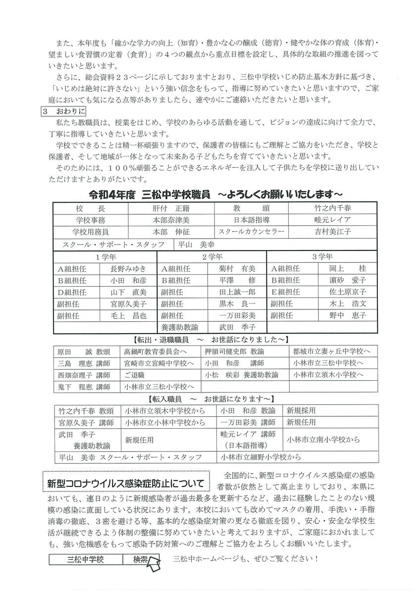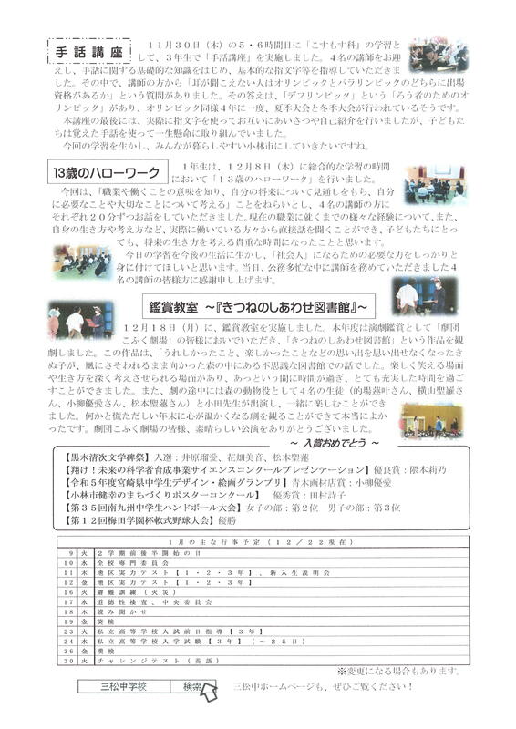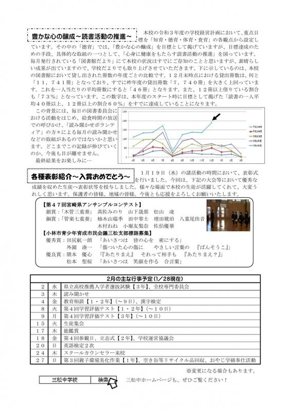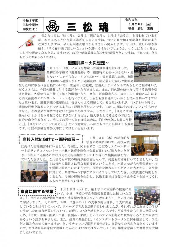 学校だより「三松魂」の令和4年1月号②を掲載しました