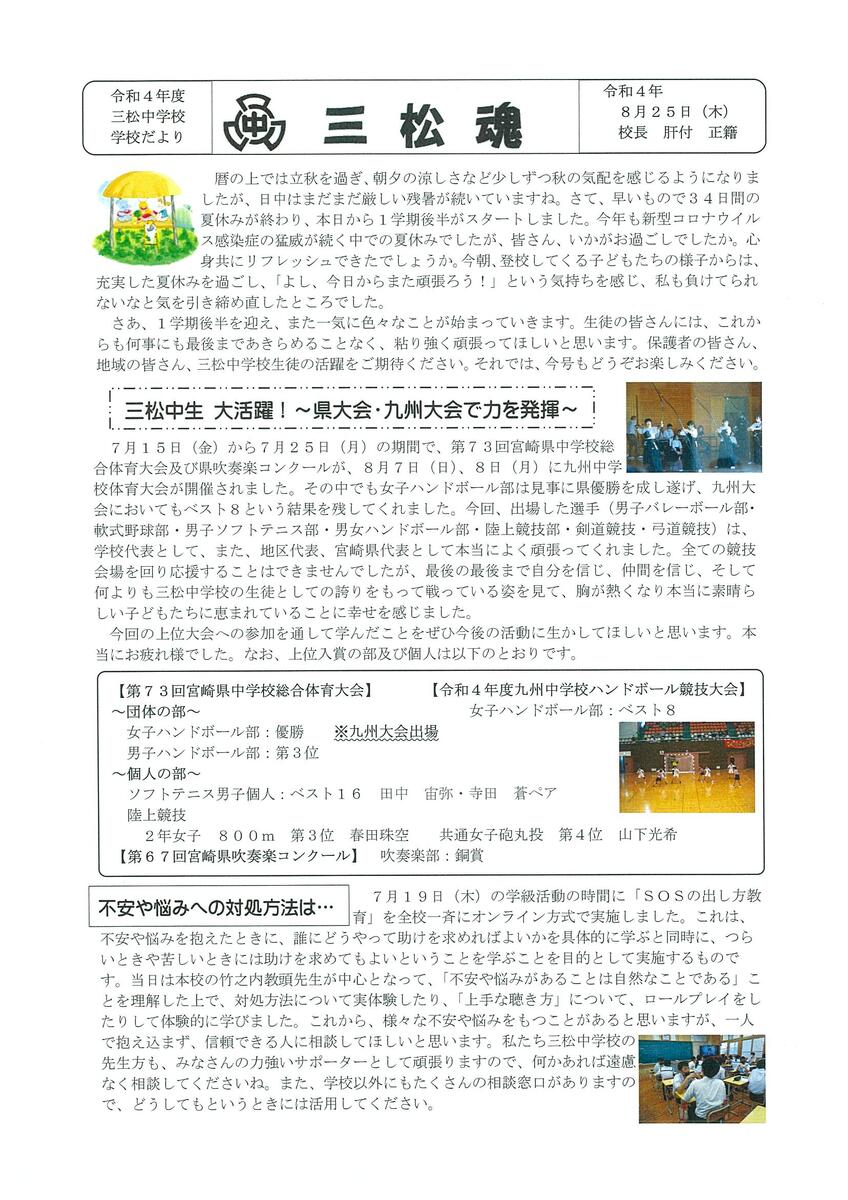 学校だより「三松魂」令和4年9月28日号が発行されました