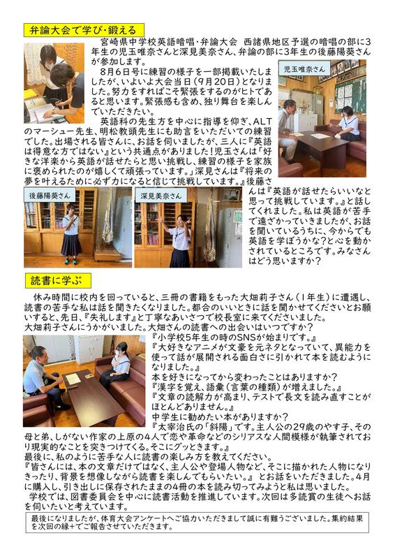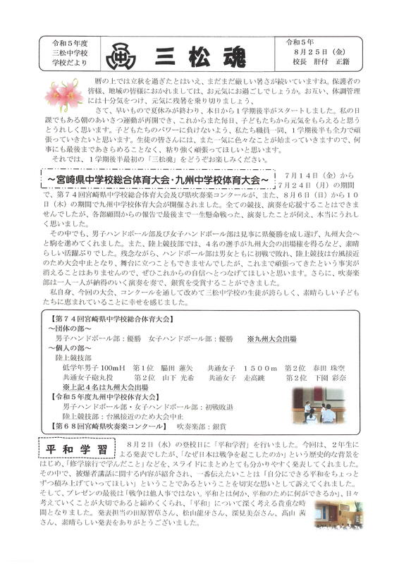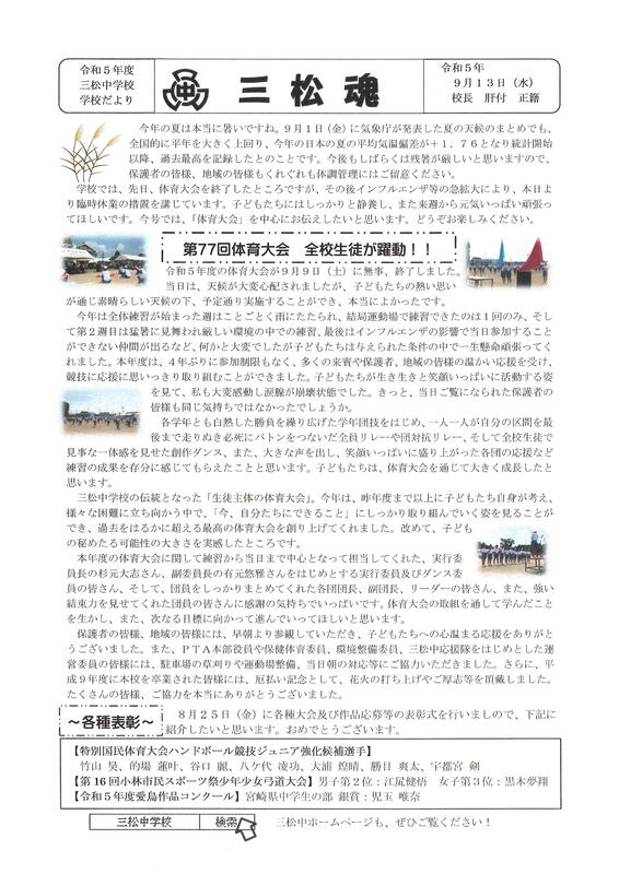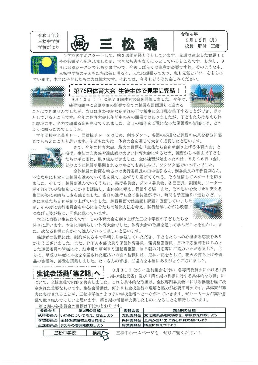 学校だより「三松魂」令和4年9月12日号が発行されました