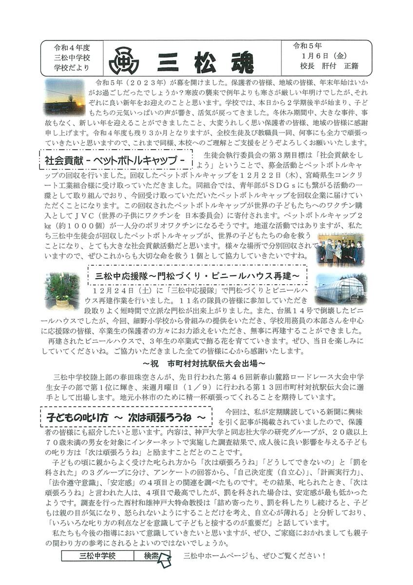 学校だより「三松魂」令和5年1月6日号を発行しました。