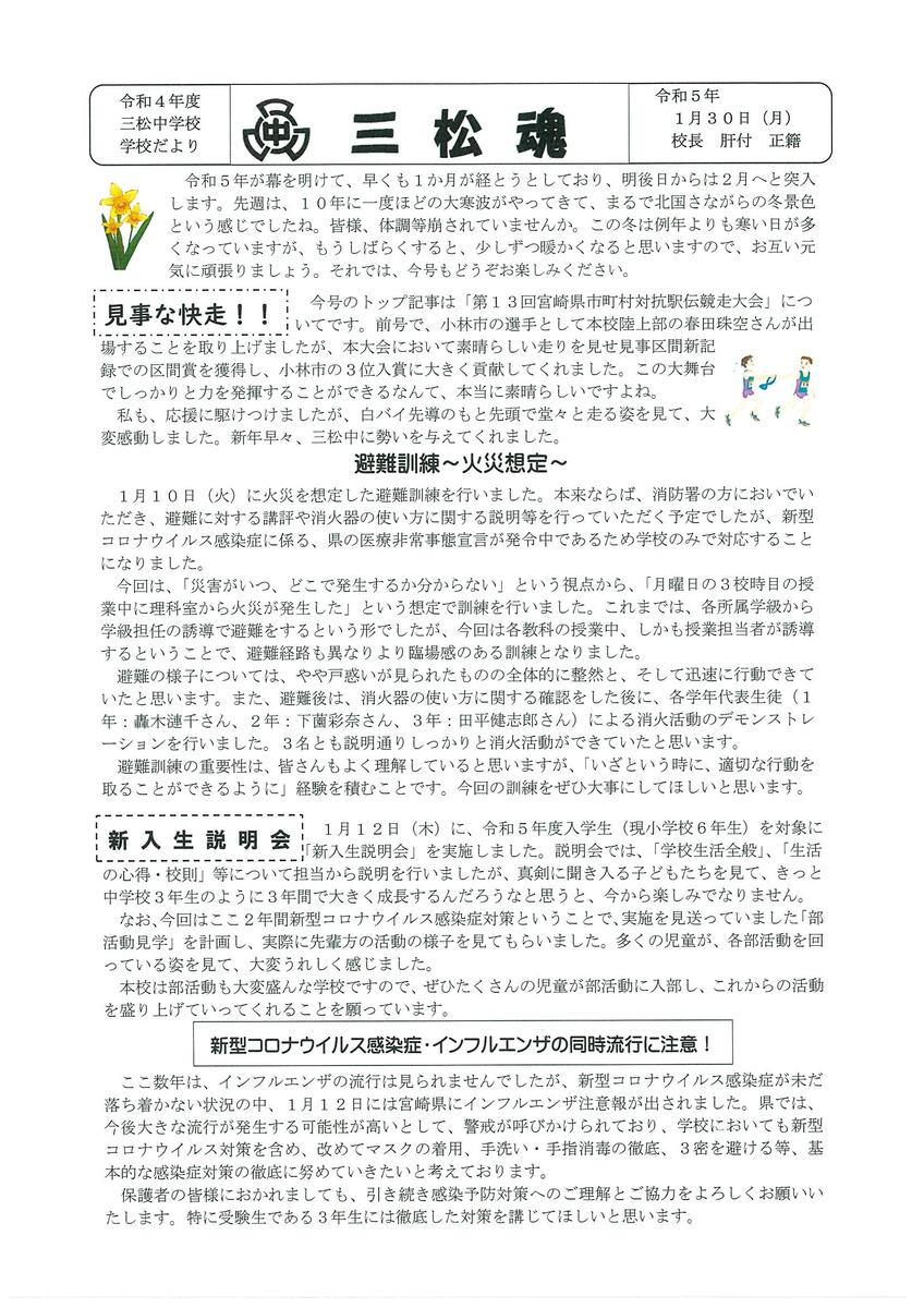 学校だより「三松魂」令和4年度1月30日号が発行されました