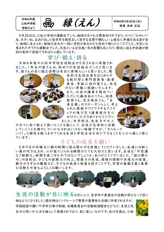 学校だより「三松魂」令和4年度第2号を発行しました。