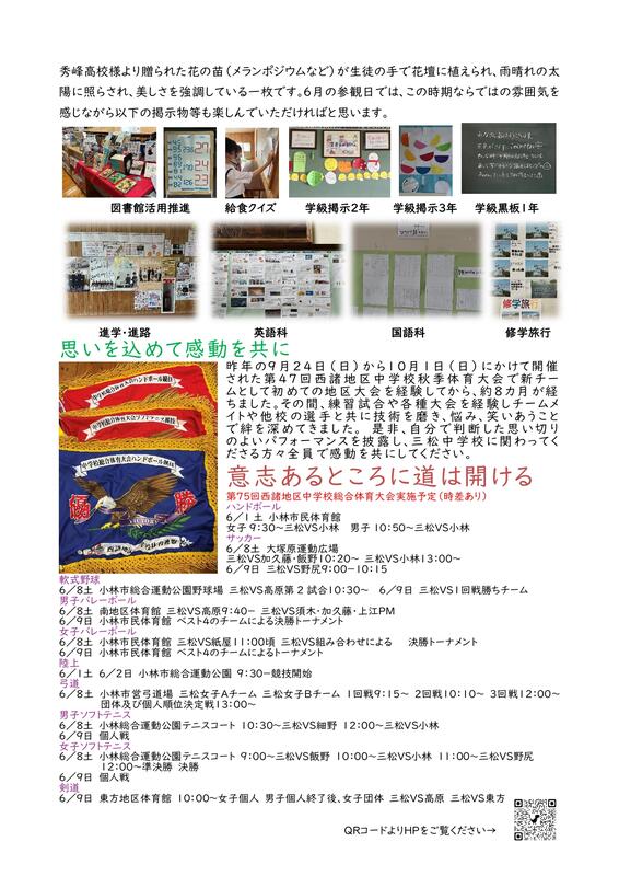 学校だより「三松魂」の令和3年6月号②を掲載しました